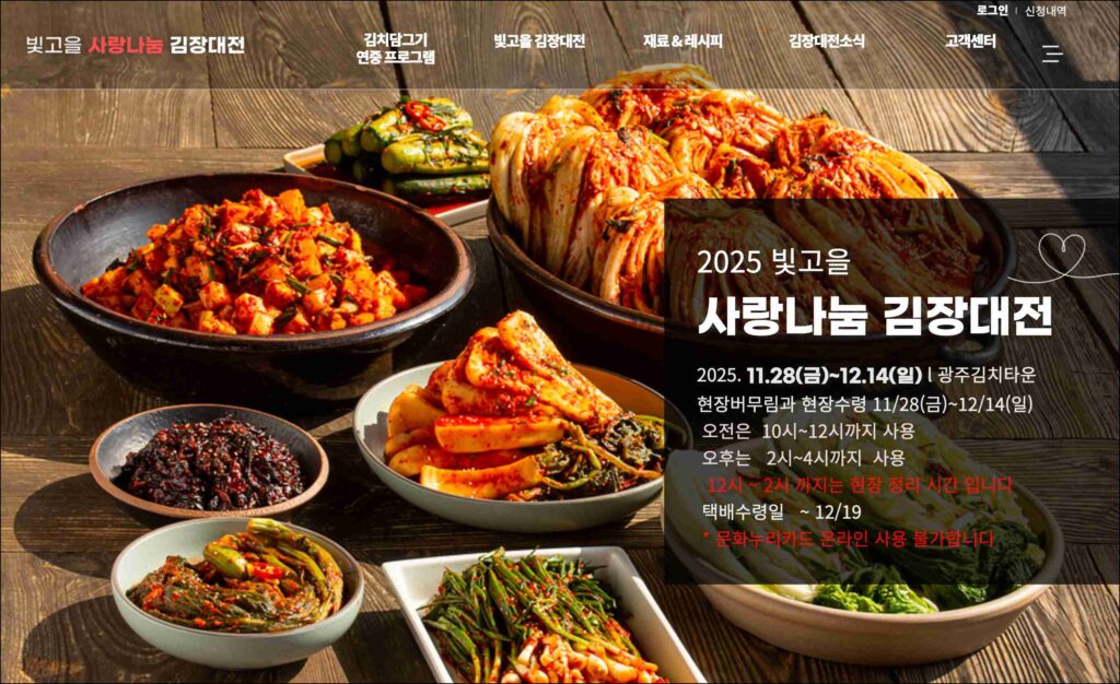 시기만 보면 보통 11월 말에서 12월 중순 사이에 열리는 편인데, 매년 일정은 조금씩 달라요. 대체로 김장철에 딱 맞춰 열리는 만큼, 이 행사 덕분에 광주 지역 김치 문화나 지역 농산물도 자연스럽게 홍보되는 효과가 있고요.