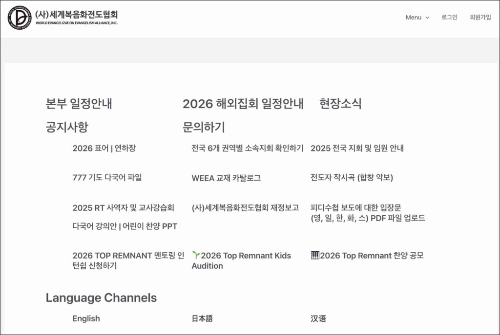 세계복음화전도협회라는 이름은 다소 공식적으로 들릴 수 있지만, 실제로는 복음 전파를 중심에 두고 활동하는 종교 단체입니다. 이름 그대로 세계를 향한 복음화, 그리고 전도를 핵심 사명으로 삼고 있는 조직이라고 보면 됩니다. 국내뿐 아니라 해외 선교까지 염두에 두고 움직이는 구조를 가지고 있습니다.