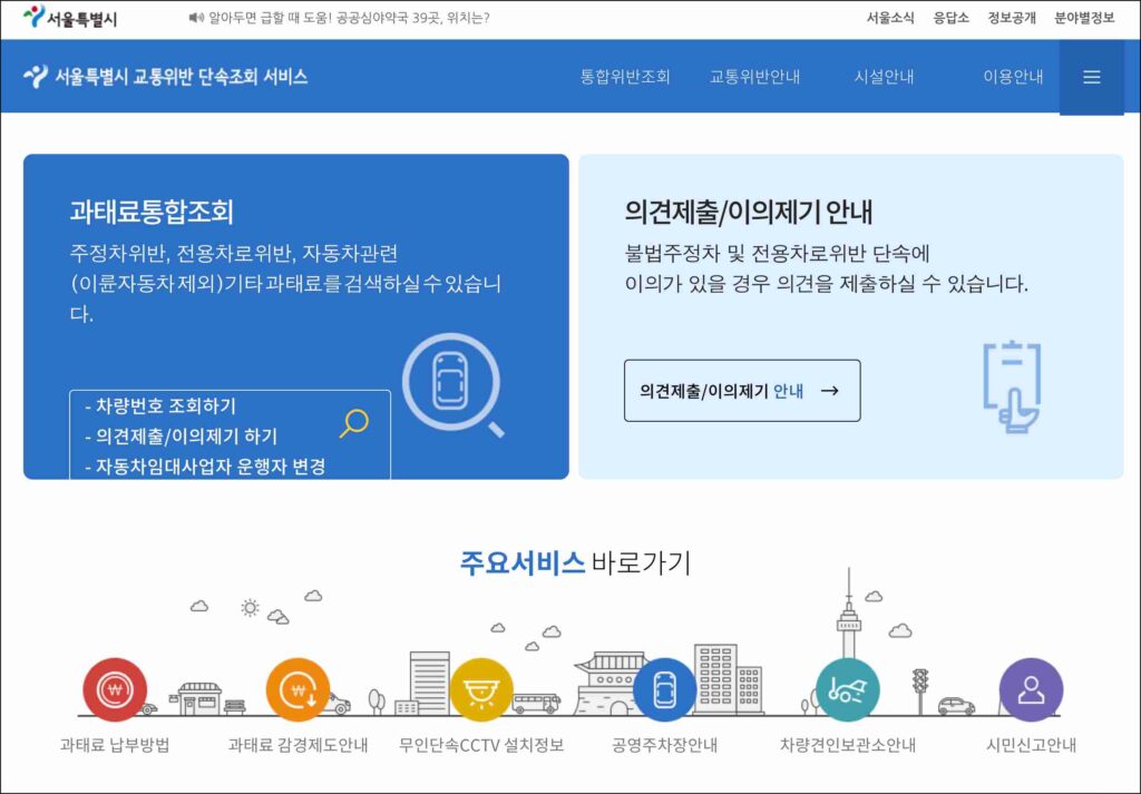 정리해보면 서울특별시 단속조회는 차량 단속 내역과 과태료, 체납 여부 등을 온라인으로 직접 확인할 수 있는 서비스입니다. 서울에서 차량을 운행한다면 한 번쯤 알아두면 유용한, 생활 밀착형 시스템이라고 볼 수 있습니다.