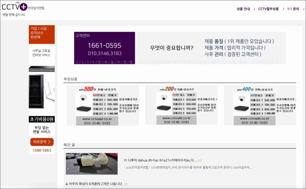 또한, 렌탈 방식과 일시불 구매 방식의 장단점을 비교해볼 수 있어 본인의 예산 상황에 맞는 경제적인 선택이 가능합니다. 무조건 비싼 장비를 권하기보다는 사용 목적에 맞춰 채널 수와 저장 용량을 조절해주는 상담 서비스도 활발히 이루어지고 있습니다. 홈페이지 내 게시판을 통해 실제 설치된 사진들을 미리 확인해볼 수 있어 내 공간에 설치했을 때의 모습을 가늠해보기 좋습니다.