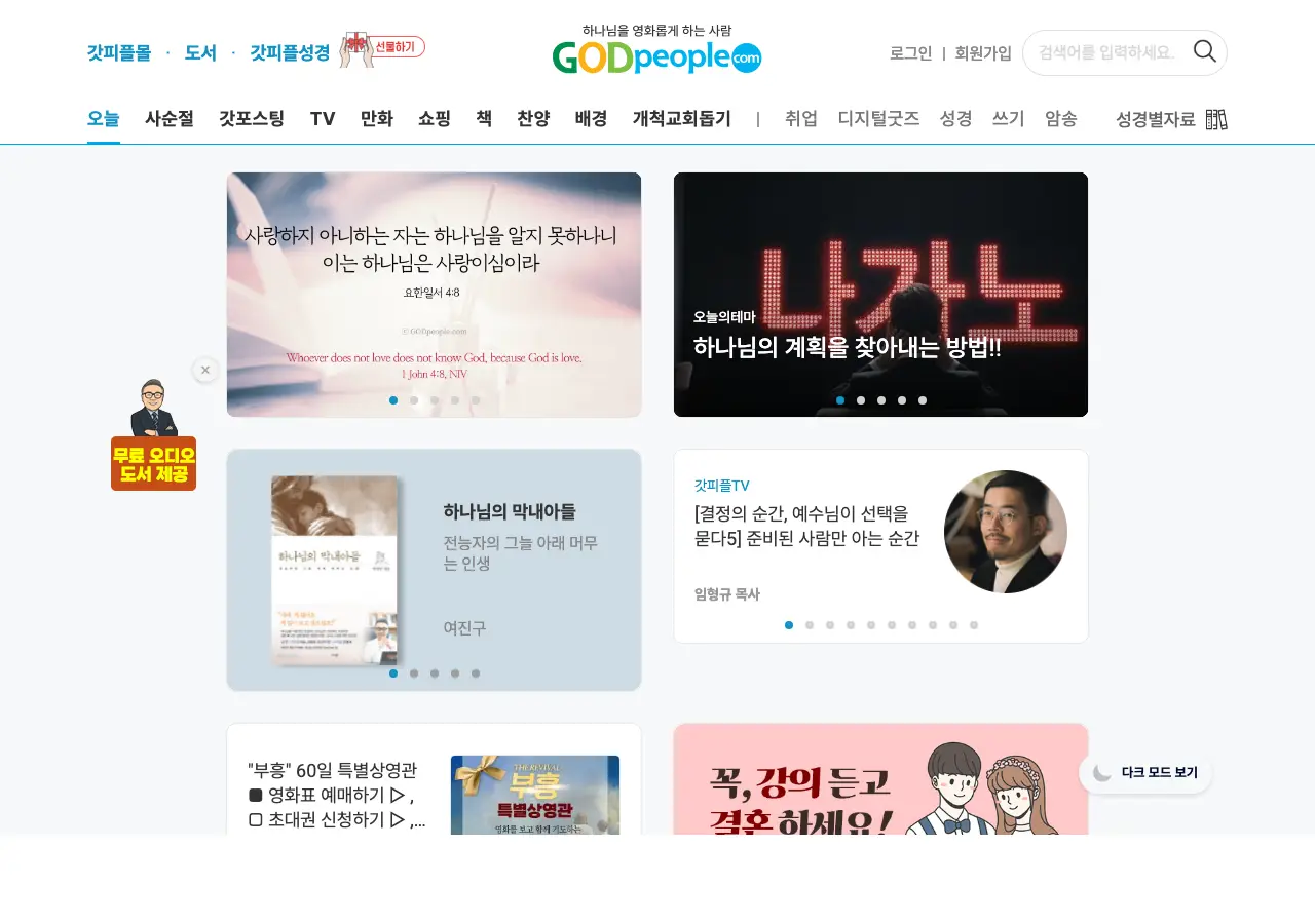 신앙생활에 도움이 되는 콘텐츠를 한 곳에서 찾고 싶은 분이라면 갓피플 한번 방문해보시는 걸 추천드려요.