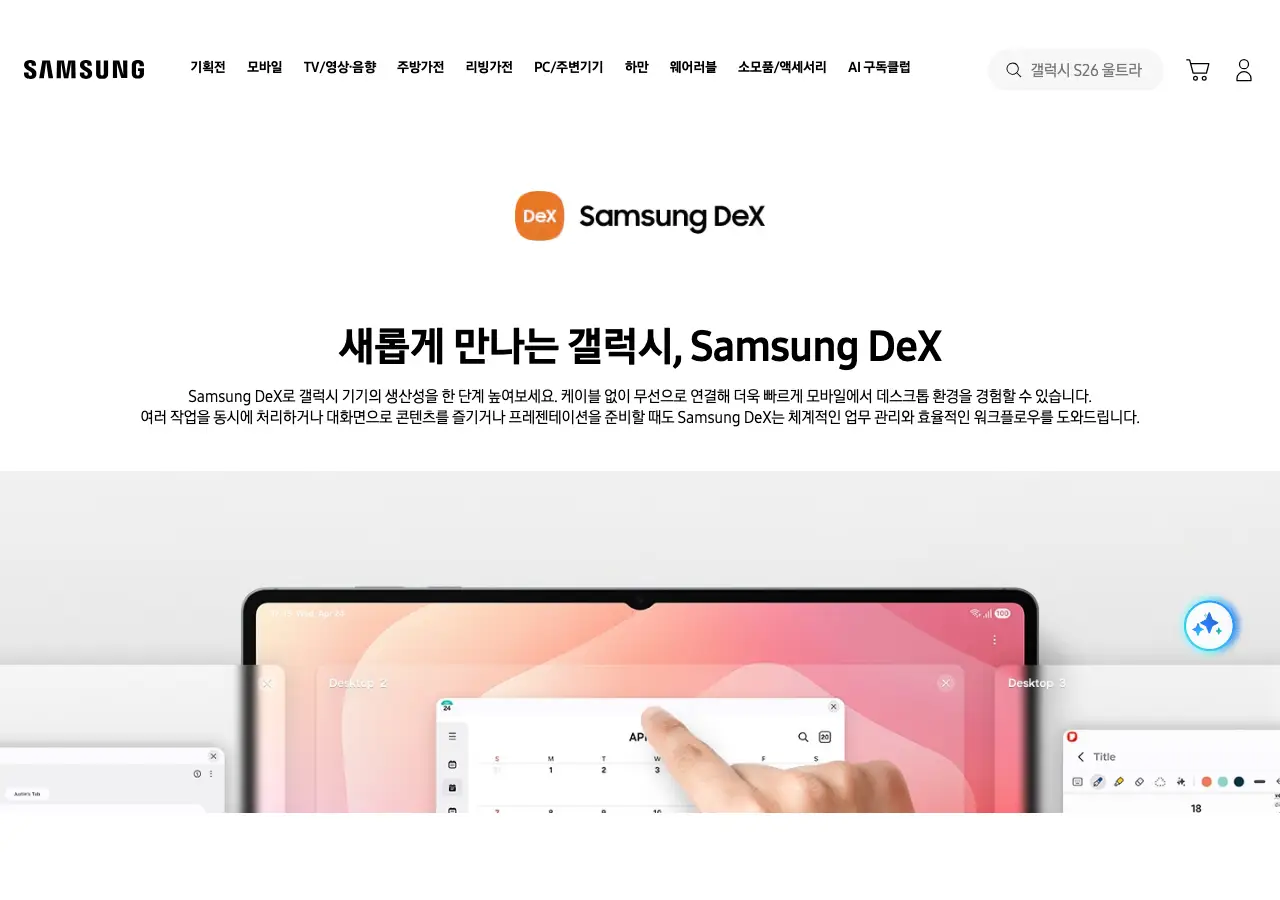 samsungdex.com에서는 DeX 공식 소개 페이지와 지원 기기 목록, 활용 방법 등을 확인할 수 있어요. 갤럭시 S 시리즈와 탭 시리즈 대부분이 지원하고, 갤럭시 Z 플립처럼 디스플레이 포트가 없는 일부 기기는 지원하지 않습니다.