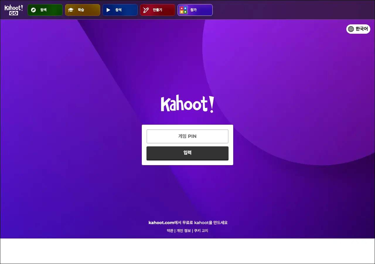 카훗(Kahoot!)은 전 세계 교실과 회의실에서 널리 쓰이는 참여형 퀴즈 플랫폼입니다. 강의자나 발표자가 만든 퀴즈에 참가자가 PIN 번호를 입력해 스마트폰으로 접속한 뒤 실시간으로 답을 맞히는 방식이에요.
