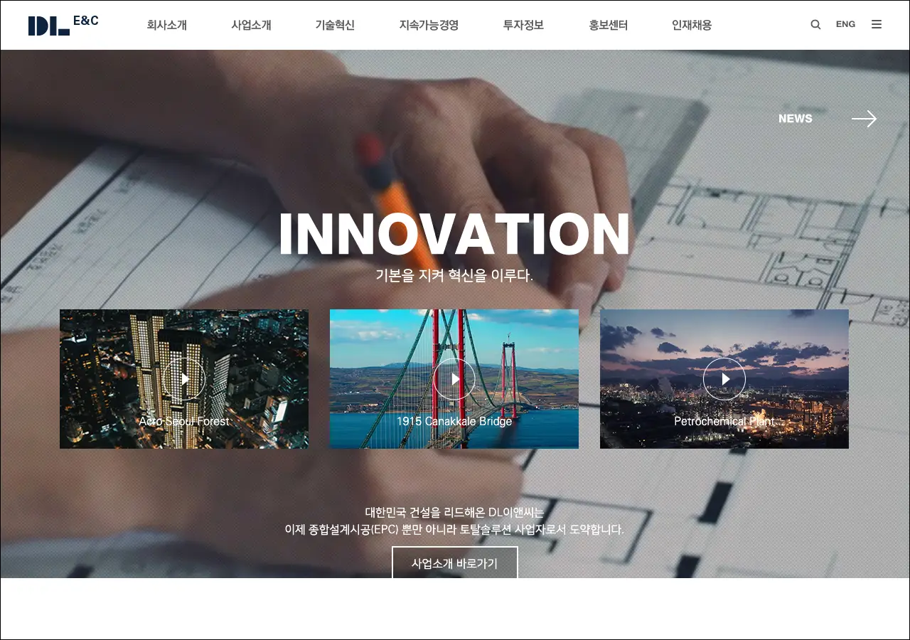 dic.co.kr은 DL이앤씨(구 대림산업) 공식 홈페이지로 연결되는 도메인입니다. DL이앤씨는 국내 대표 종합건설사 중 한 곳으로, 주거 브랜드 e편한세상과 ACRO 시리즈를 운영하고 있고요. 토목, 플랜트, 주택 등 건설업 전 분야에 걸쳐 사업을 진행하고 있는 1세대 건설사입니다.