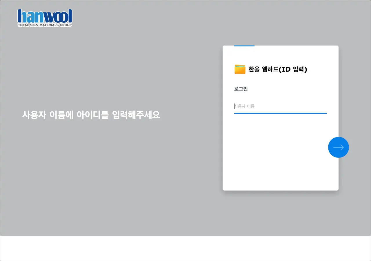 한울 웹하드의 ID 로그인 페이지입니다. 기업이나 조직에서 내부 자료 공유와 백업 용도로 운영하는 사설 웹하드 서비스로 보이며, 아이디와 비밀번호 입력을 통해 접근하는 구조로 되어 있어요.