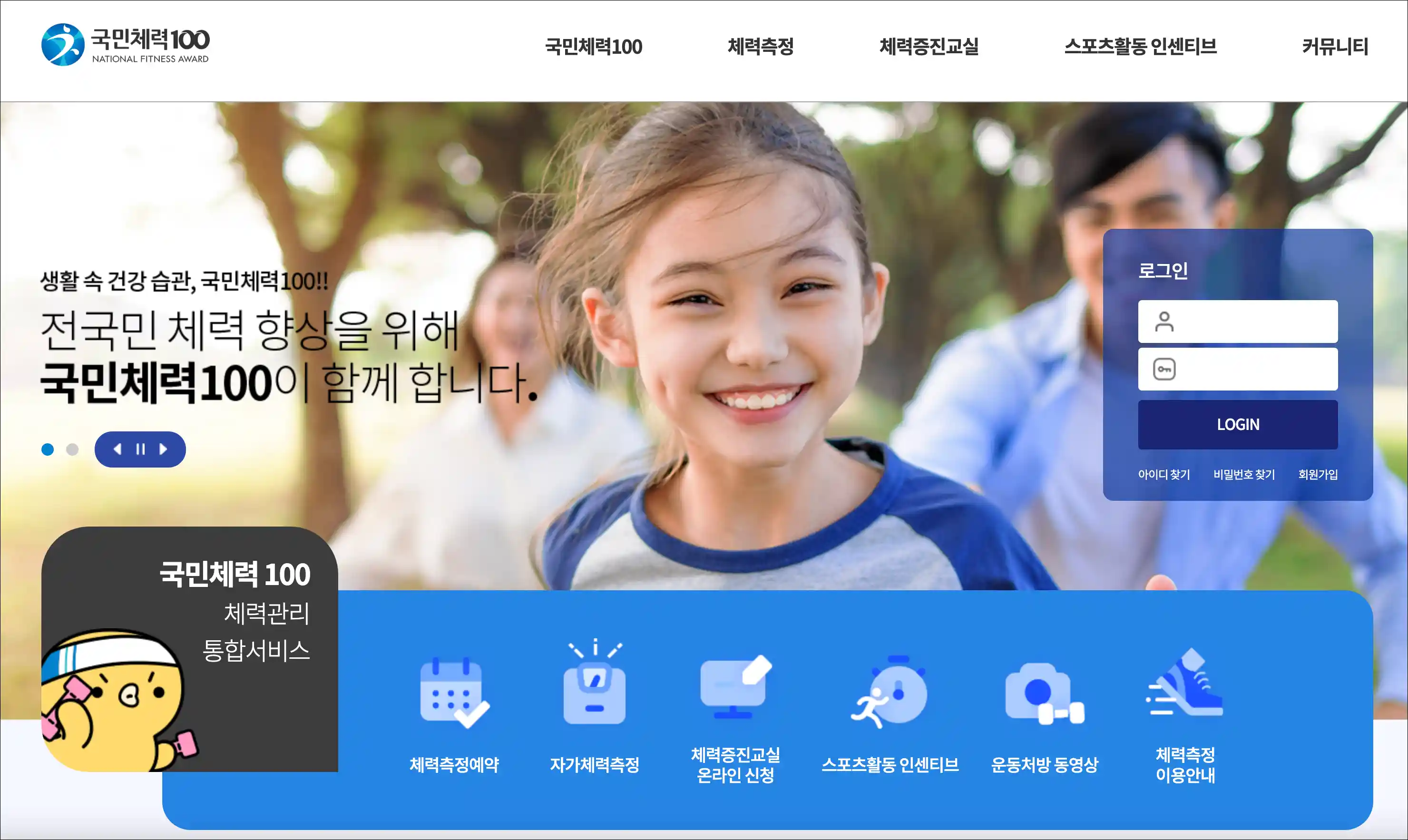 회원가입 시 1000 포인트, 체력 측정 시 5000 포인트를 받을 수 있습니다. 운동 후 정부가 인증한 기관에서 QR 코드를 찍으면 10회 운동마다 1만점이 적립되며, 이를 모아 ‘국민체력100’ 사이트에서 상품권으로 전환할 수 있습니다. 상품권은 현재는 문화상품권으로 제공되지만, 다음 달 중순부터는 ‘제로페이’에서 발행하는 ‘스포츠상품권’으로 변경될 예정입니다.